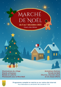 Venez vivre la magie de Noël à Simiane-Collongue du 5 au 7 décembre 2025 ! La magie de Noël s’invite à Simiane-Collongue, sur le Cours des Héros, pour trois jours d’enchantement, de gourmandise et de partage. Du vendredi 5 au dimanche 7 décembre 2025, petits et grands sont conviés à plonger dans l’ambiance féerique des […]