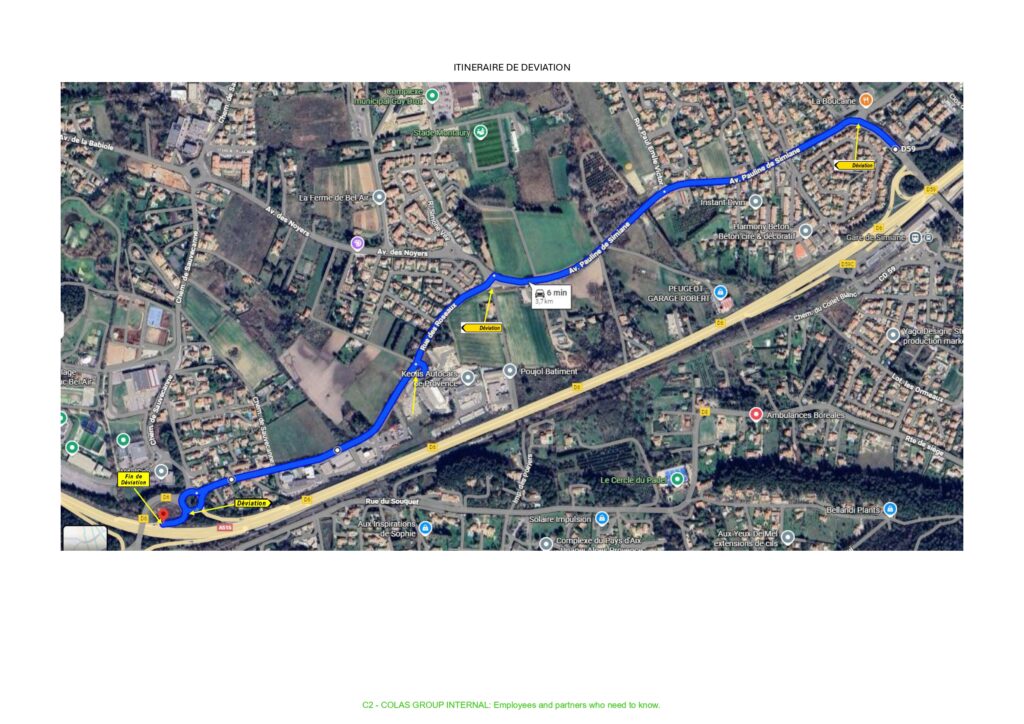 Une déviation va être mise en place, passant par l’Avenue Pauline de Simiane et la Rue des Roseaux.